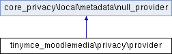 Privacy Subsystem for tinymce_moodlemedia implementing null_provider. More...